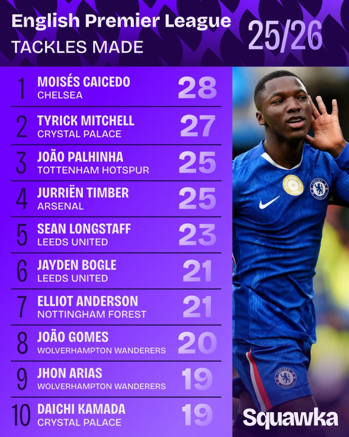 股票交流平台数据网站squawka统计了本赛季英超的抢断榜